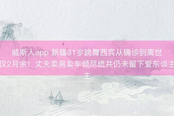 1月14日,31岁新疆跳舞西宾万小艳因患EB噬血细胞概述征厄运离世,从确诊到生命斥逐仅两个多月。 为救治配头,其丈夫温顺卖房卖车倾尽统共,但仍未留下爱东谈主,坦...