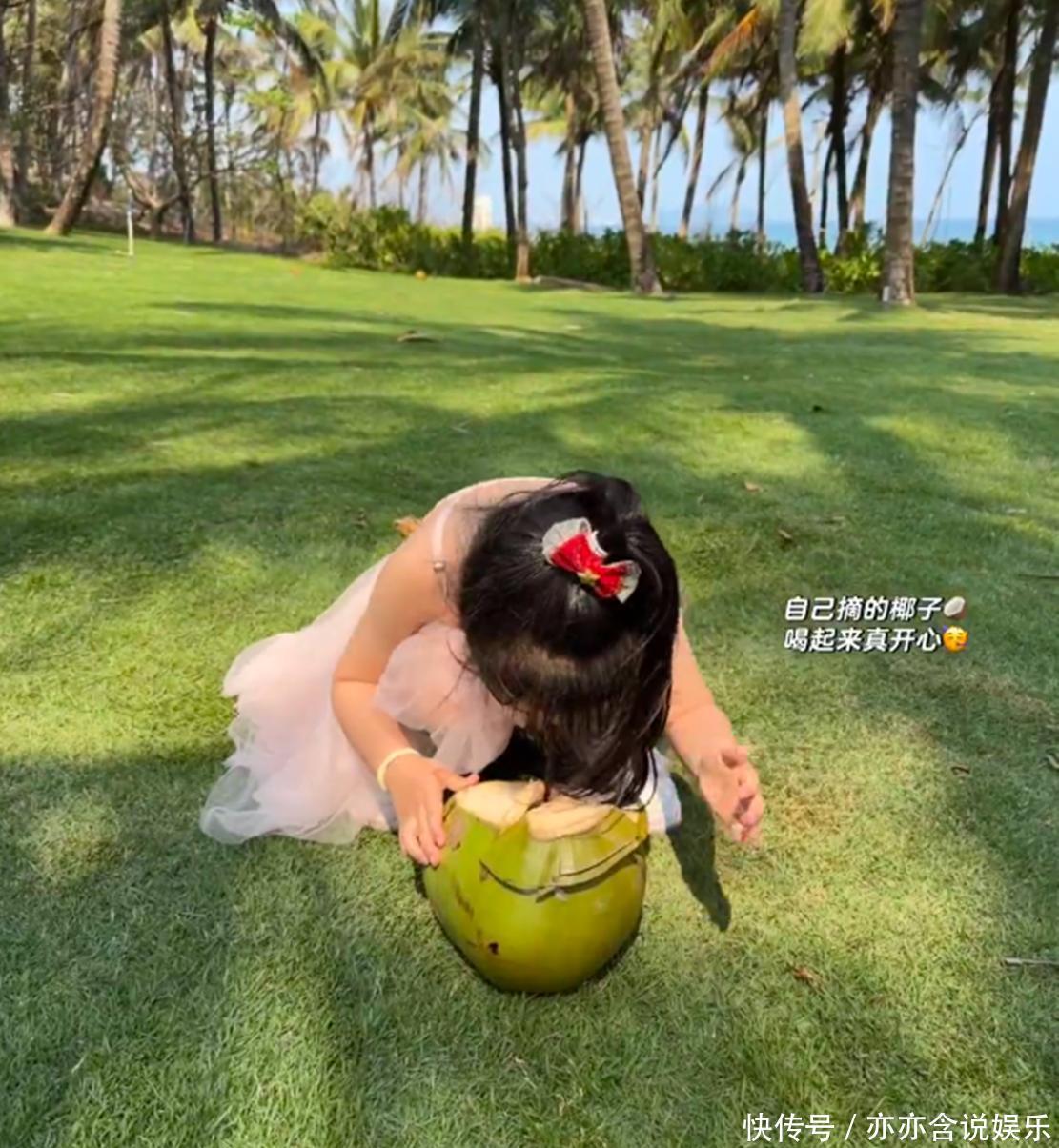 还有男儿的单东说念主照,径直萌翻世东说念主。小小姐趴在草坪上,抱着我方摘的大椰子。粉纱裙配小发饰,可人到犯规!
