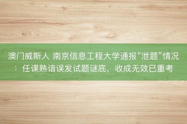 1月14日,南京信息工程大学教务处发布一则情况通报: 1月13日上昼,该校举行《数字电子本领》课程期末检修,检修按捺后学生反应试卷有泄题嫌疑。 {jz:fiel...
