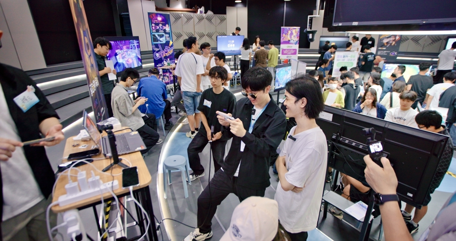 LKs在米哈游上海的办公室,体验mini project应届生们7周作念的游戏。 受访者供图