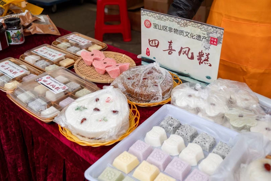 在“宝山非遗好物”专区,罗泾四喜风糕、高境布艺堆画、月浦竹编等非遗形势齐集展示,老香斋茶点制作身手现场展演,让市民在采购之余千里浸式感受非遗魔力。
