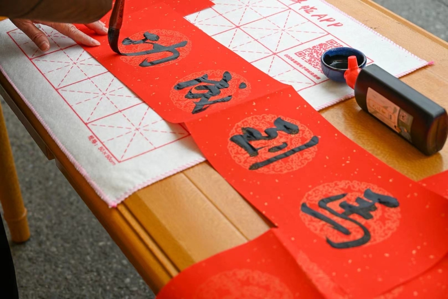 市集里的年味儿藏在非遗匠心里,相同飘在文字书香中。头发斑白却精神果断的马大姐正挥毫泼墨,红纸上的“福”字强盛有劲。“我姓马,本年又恰逢马年,能来这儿给公共写对子、送福字,既应景又侵犯,心里别提多舒坦了!”马大姐笑着说。市民惟有破钞就能领取这份手写的道贺,不少东谈主拿到墨迹未干的对子,坐窝防御翼翼地折好放进购物袋,“手写的对子才有温度,带着这份墨香回家,年味儿都更足了!”一位刚领到对子的大姨说。
