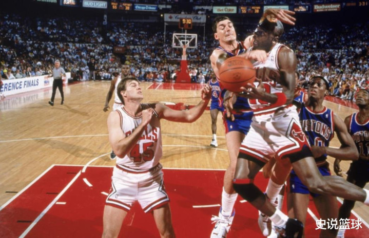 往时施行这套法令最刚烈的,等于兰比尔、马洪和罗德曼这群“恶汉”,兰比尔的铁肘、马洪的冲撞、罗德曼的死缠烂打,每一个齐冲着破钞乔丹去的,他们以至会在要紧端独特让乔丹防范,逼着他在攻防两头拼尽全力耗干膂力。在阿谁莫得严格坏心犯规判罚的年代,活塞这帮东谈主打球根底不冲球去,罗德曼在记录片里坦言,乔丹杀进油漆区,兰比尔他们就径直抱摔、下绊子,威斯人指标等于把他弄伤。比赛赢输照旧不要紧了,把乔丹干趴下才是最终指标!