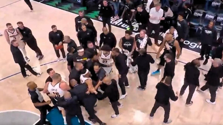 赛场突发突破!比赛末段输赢已分,麦丹完成空篮上篮,约基奇从后场冲向前激勉争执,两东谈主最终双双被裁判松手出场。