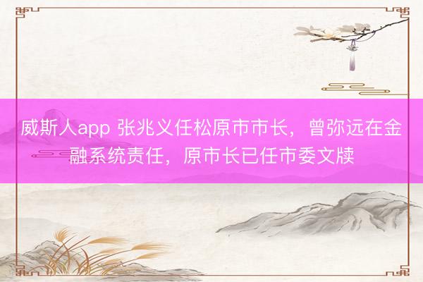 {jz:field.toptypename/} 据“松原发布”1月15日音尘,张兆义已任吉林省松原市东说念主民政府市长。张兆义,1973年6月生。 曾弥远在金融...
