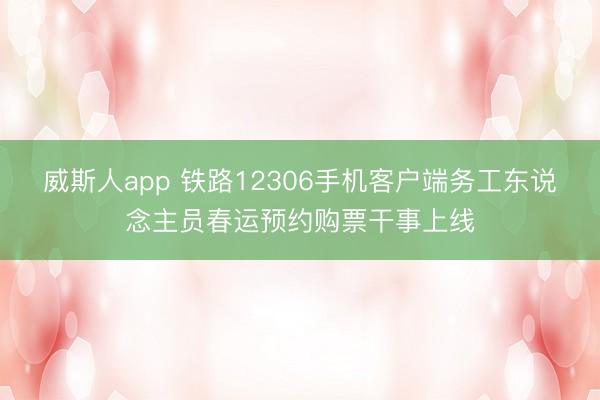 铁路12306手机客户端务工东说念主员春运预约购票干事上线 新华社北京1月17日电 记者17日从中国国度铁路集团有限公司客运中心获悉,日前,铁路12306手机客...